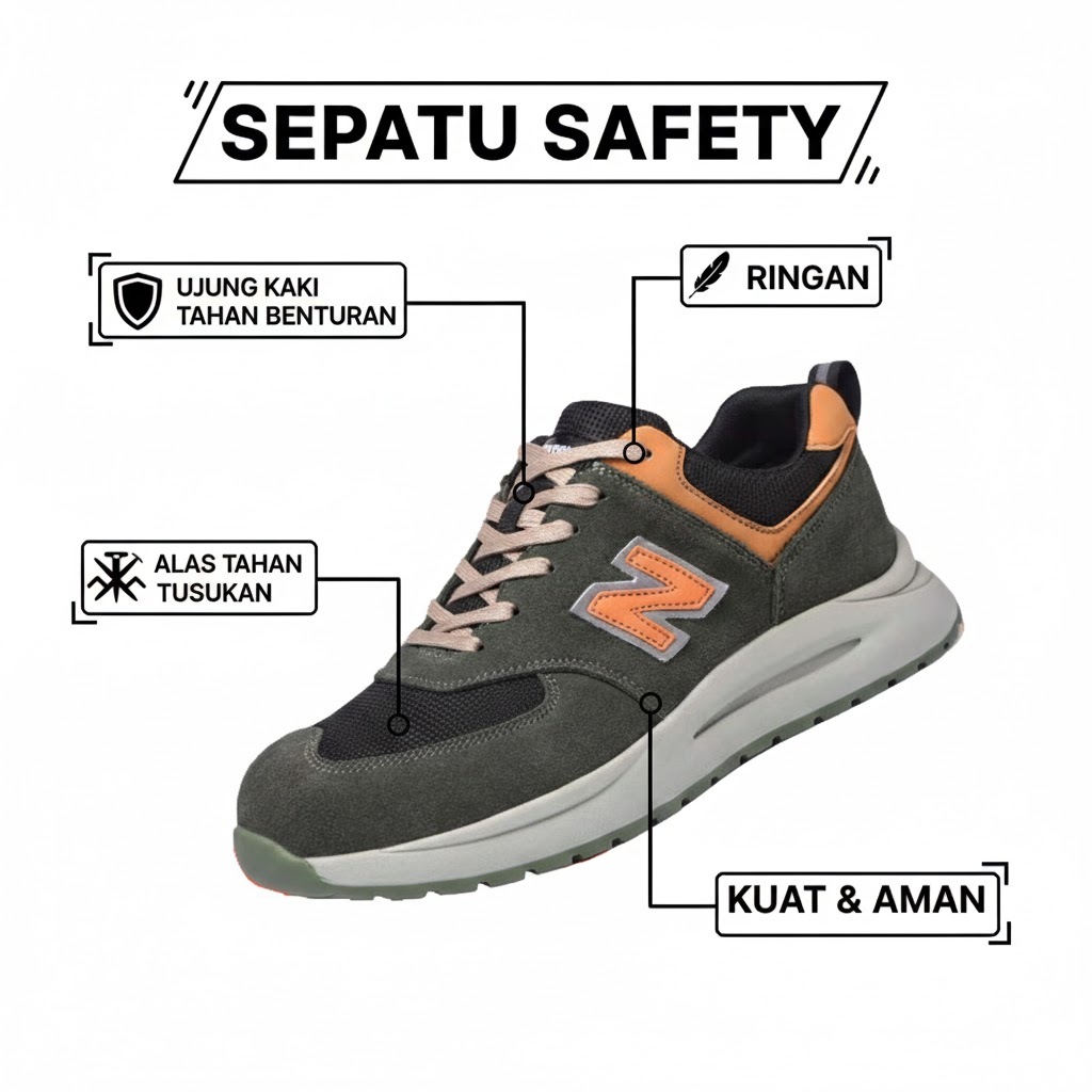 Sepatu Safety Model Sneakers – Import Kualitas Premium, Anti Slip & Tahan Benturan