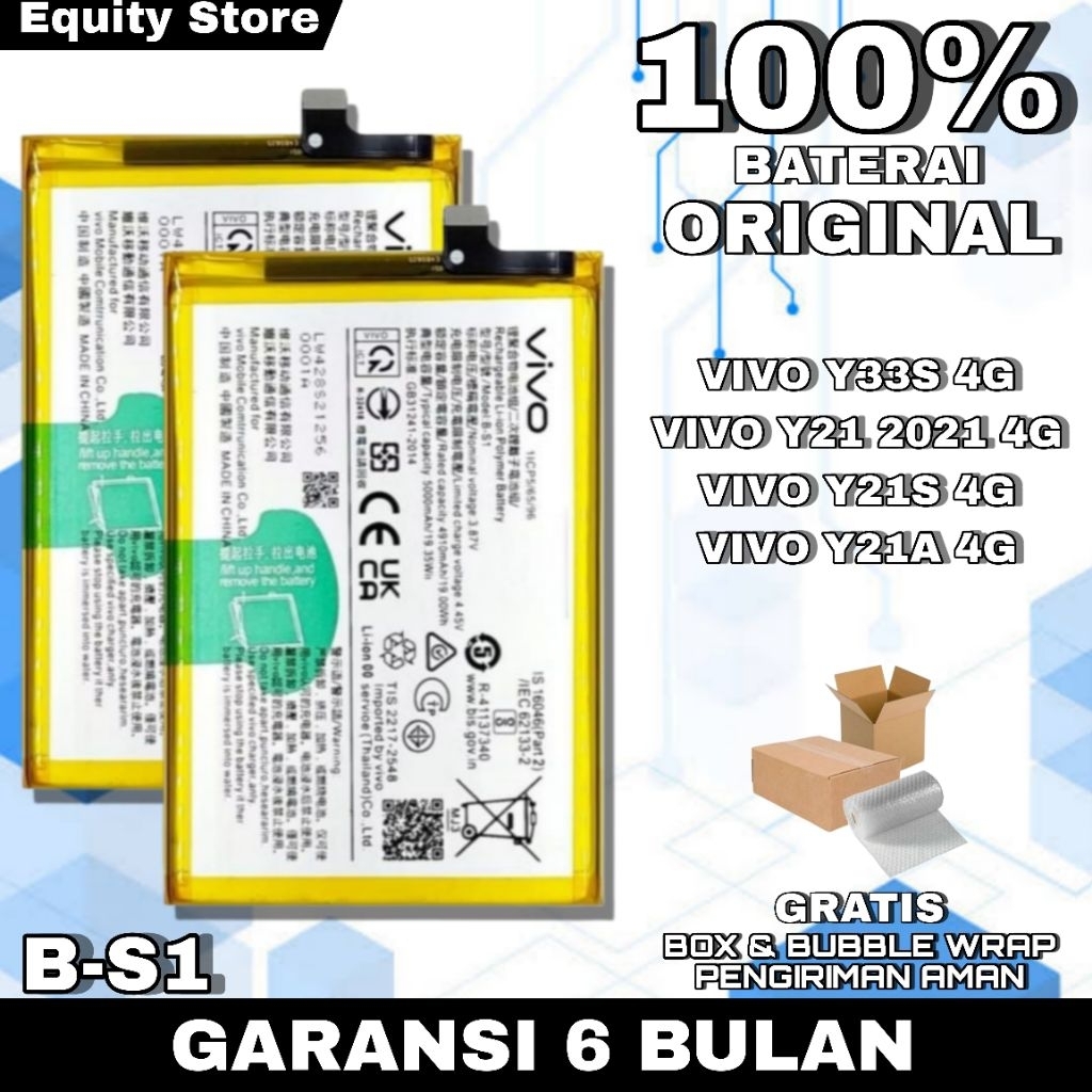 BATERAI BATRAI BATRE BATTERY Y33S 4G / Y21 2021 4G / Y21S 4G / Y21A 4G B-S1 B S1 BS1 ORIGINAL 100 PERSEN