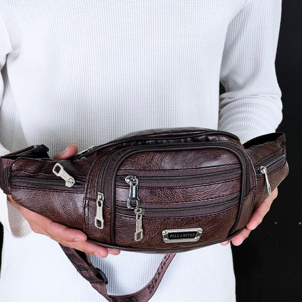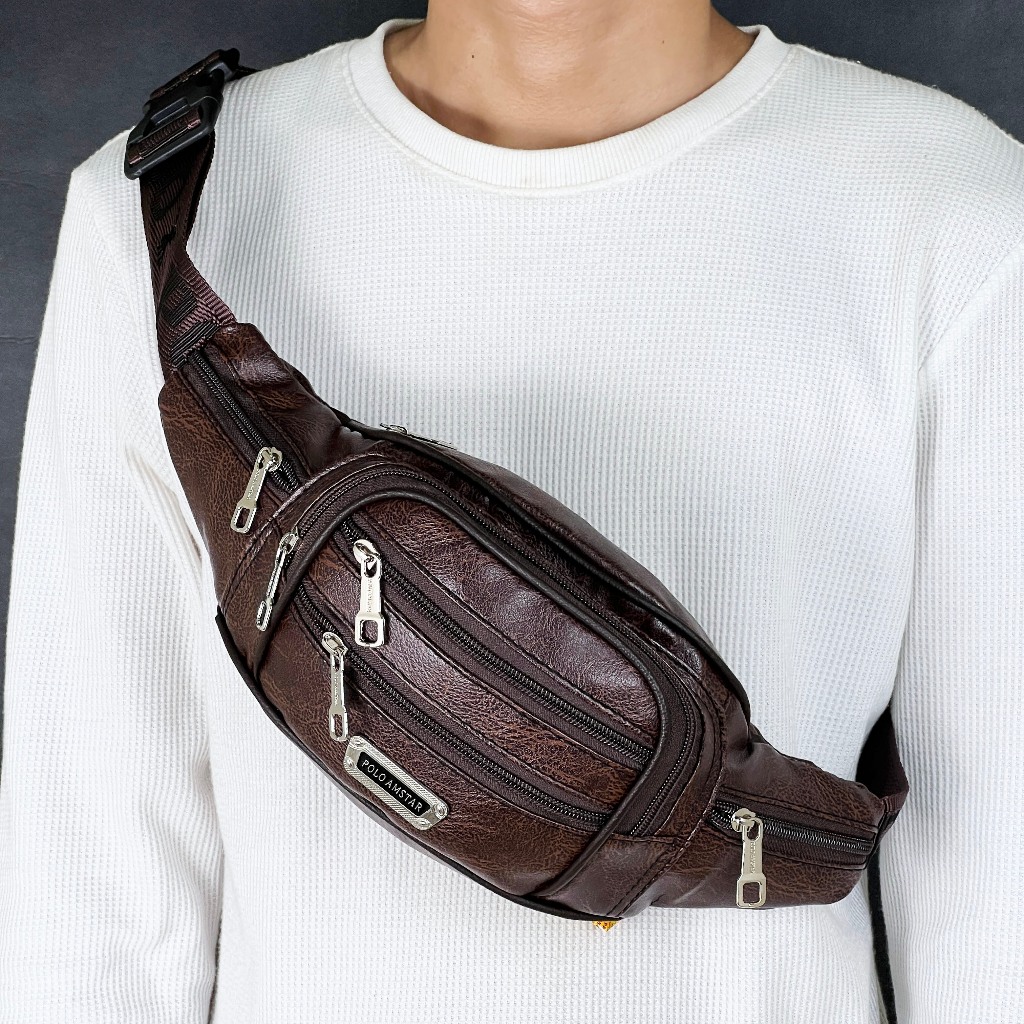 Tas Selempang Pria 7 Ruang Waistbag Renno Pu Leather Polo Amstar Slingbag Tas Pinggang Pria