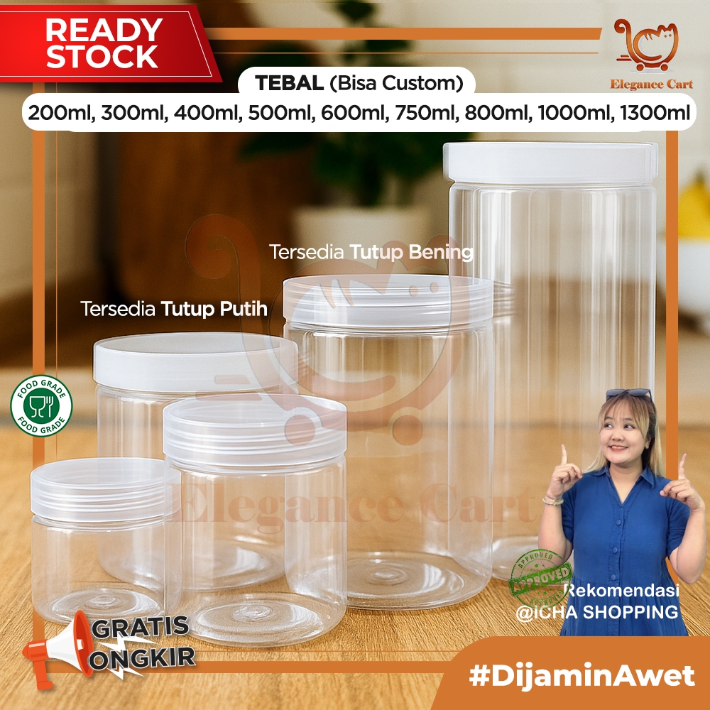Toples Plastik Tebal 300ml 400ml 500ml 750ml 1000ml 1300ml Jar Silinder Bening Pet Toples Kue kering