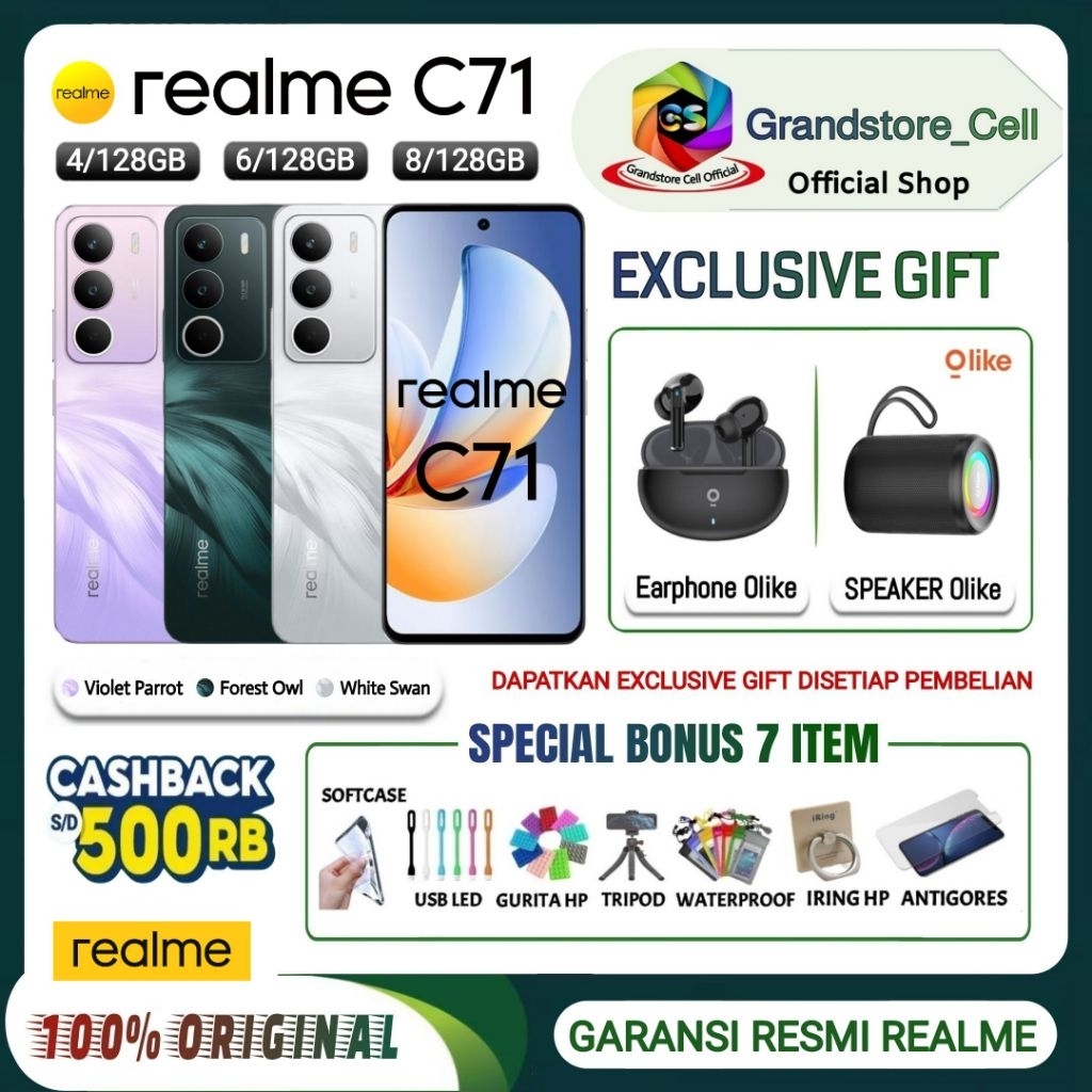 Realme C71 Nfc Ram 4/128Gb - 6/128Gb - 8/128Gb, Battery 6300Mah & 45W Fast Charge Garansi Resmi Realme Indonesia