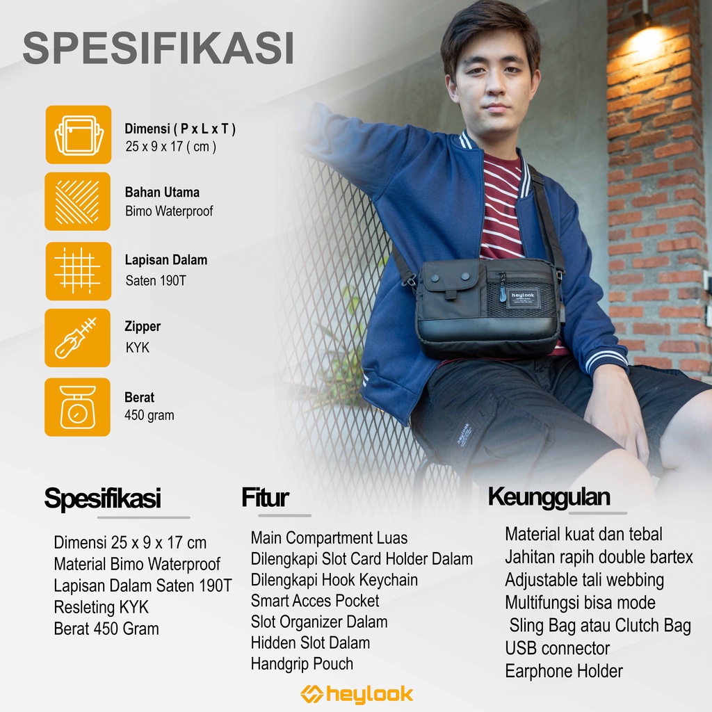 Heylook Official - Sling Bag Axton Multyfungsi 3 In 1 Hand Bag Kulit Anti-Air Tas Selempang Waterproof Clutch Bag Pria W