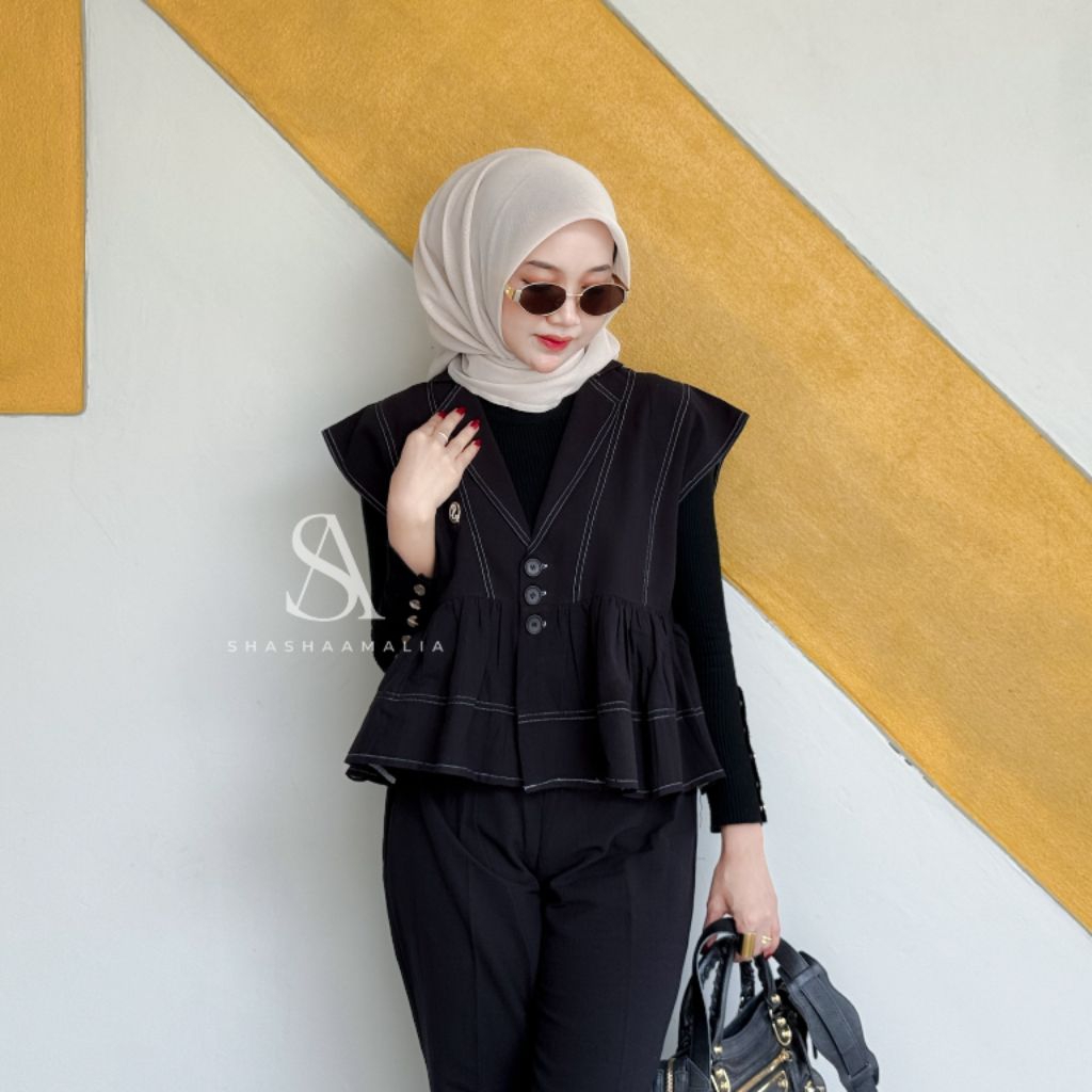 Orla Set Vest Size XL Premium Linen One Set Wanita BYSHASHAAMALIA