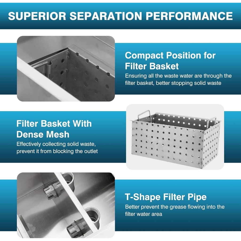 60*30*30cm Stainless Steel 4 Lsan Penyaring Grease Trap Filter Lemak Minyak