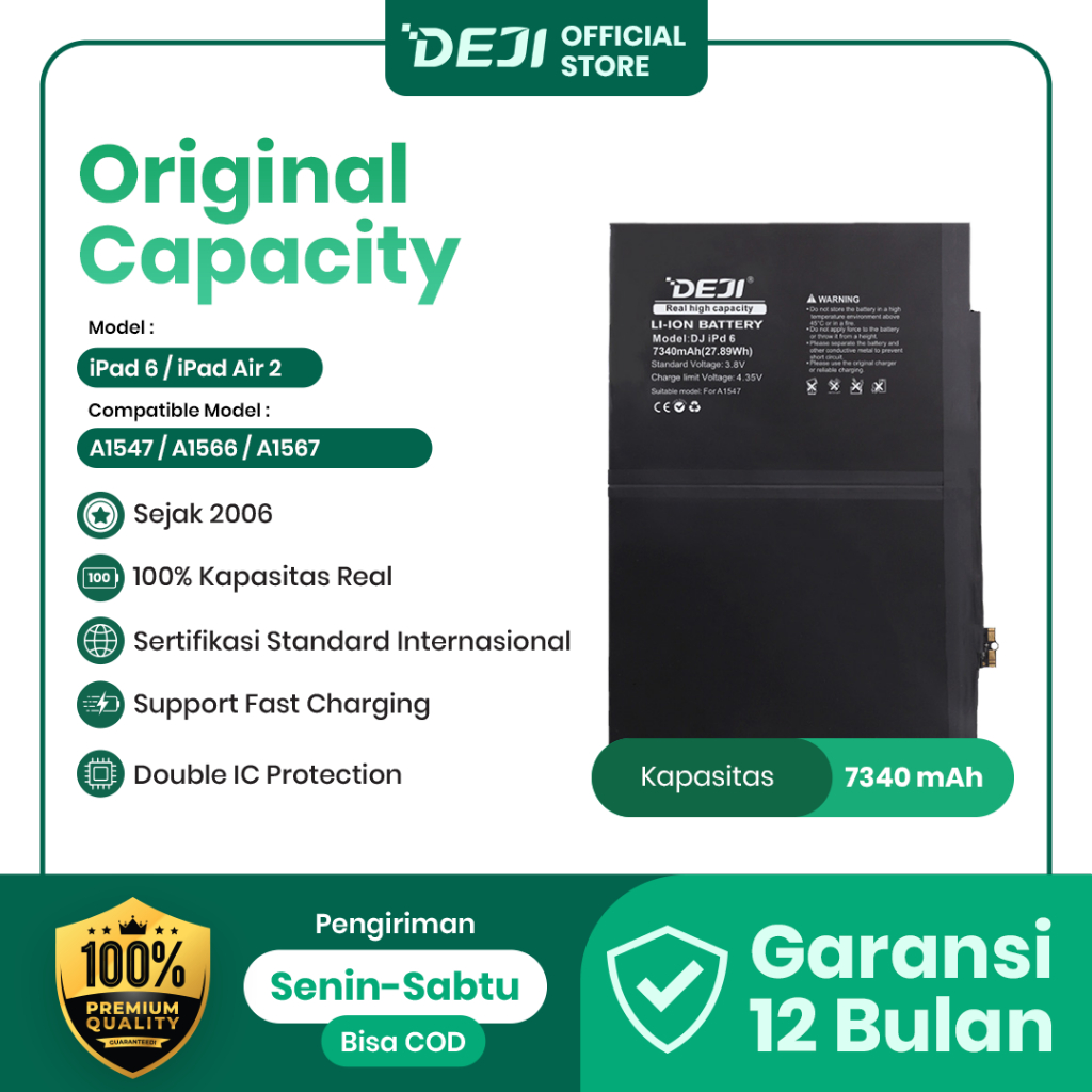 DEJI Baterai iPad Air 2 Li-ion 7340mAh 4.45V Original Capacity iPad Battery