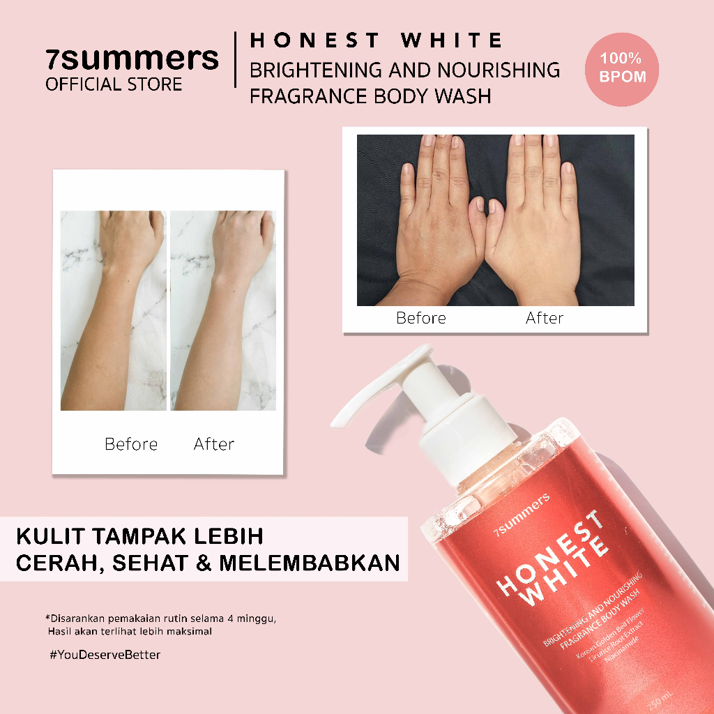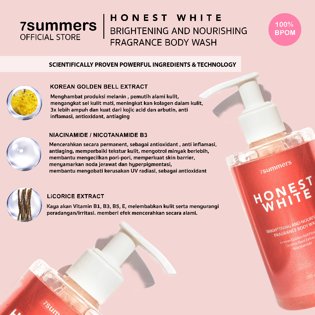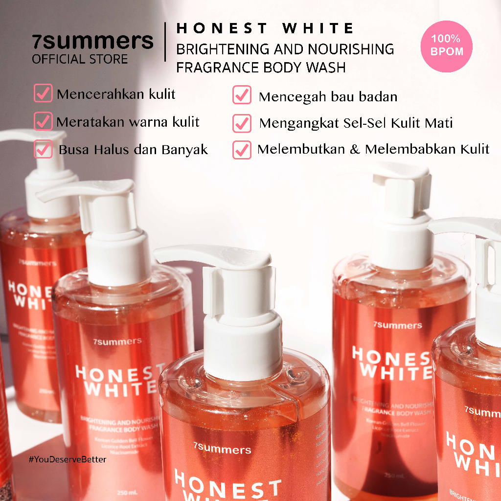 7Summers Honest White Brightening & Nourishing Body Wash Perfume Fragrance Bright Glow Sabun Mandi 24Hr Stay Parfum 250M
