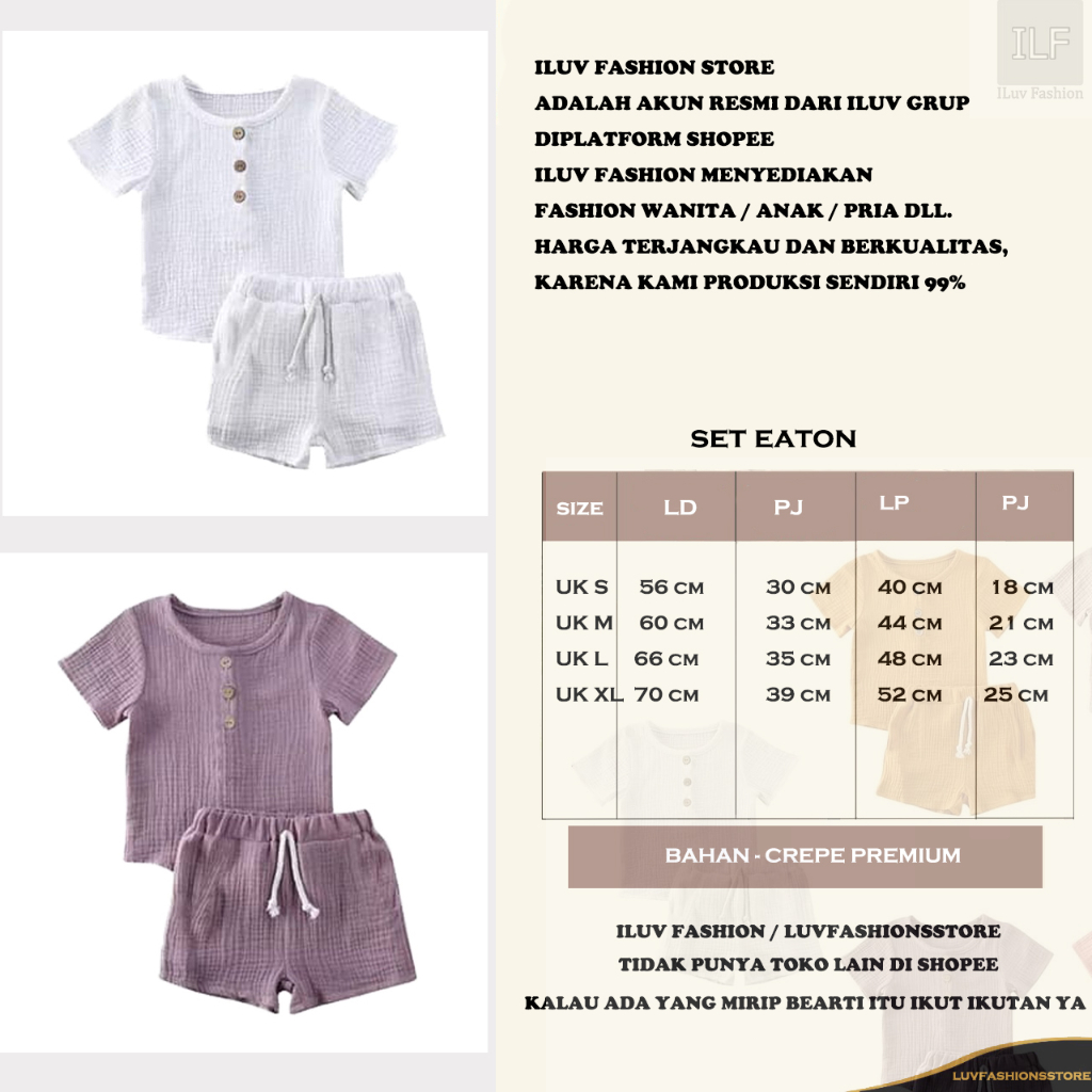 SET ANAK EATON CREPE PREMIUM / SETELAN ANAK BALITA PEREMPUAN / LAKI - LAKI