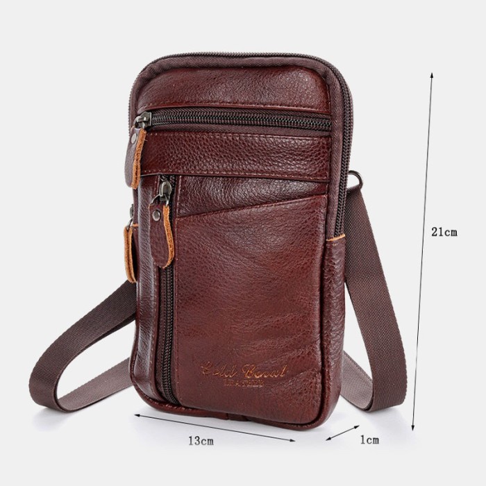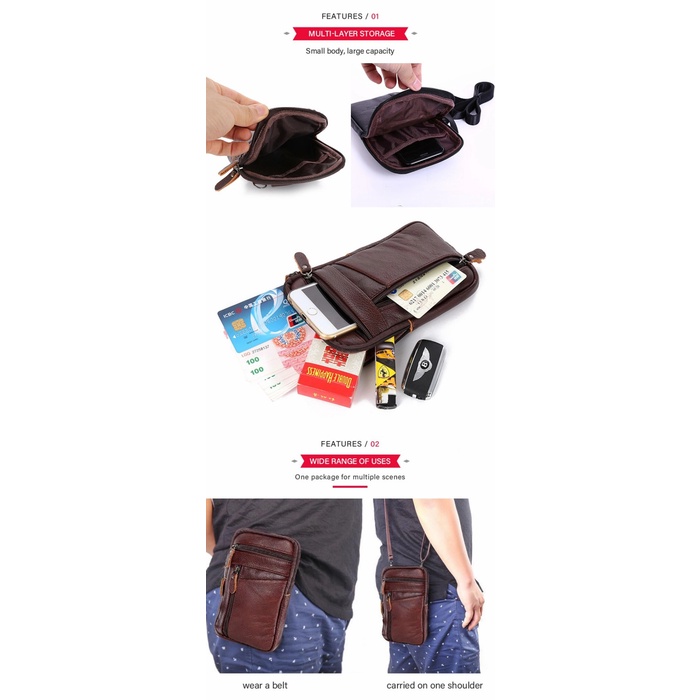 Tas Dompet Selempang Pinggang Slingbag Hp Smartphone Gadget Kulit Sapi Asli Pria Gadget Sedang Kecil Praktis