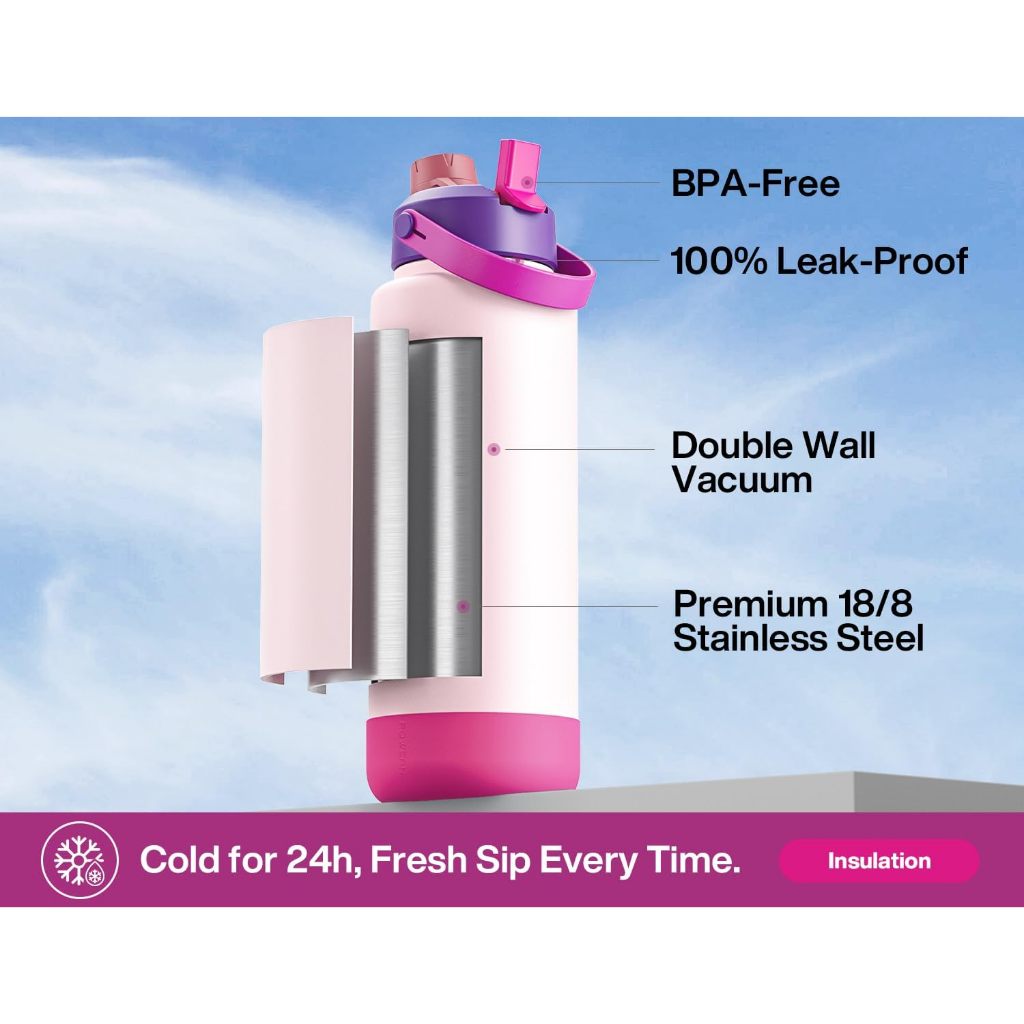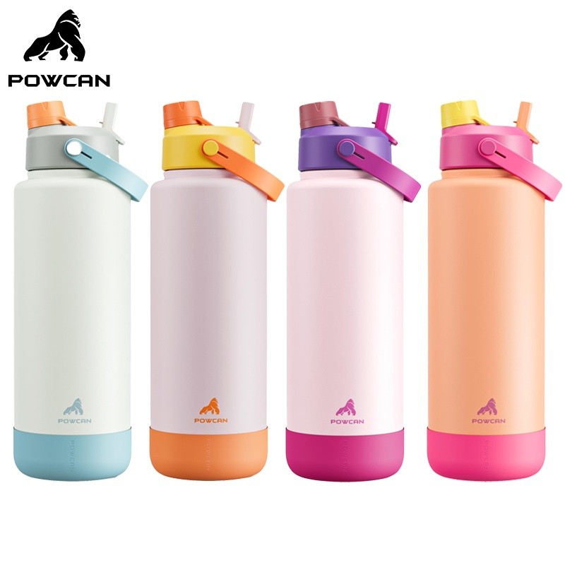 Gelas POWCAN 40oz dengan tutup sedotan dan mulut 2-in-1, anti bocor, Bebas BPA, botol air baja tahan karat berdinding ga