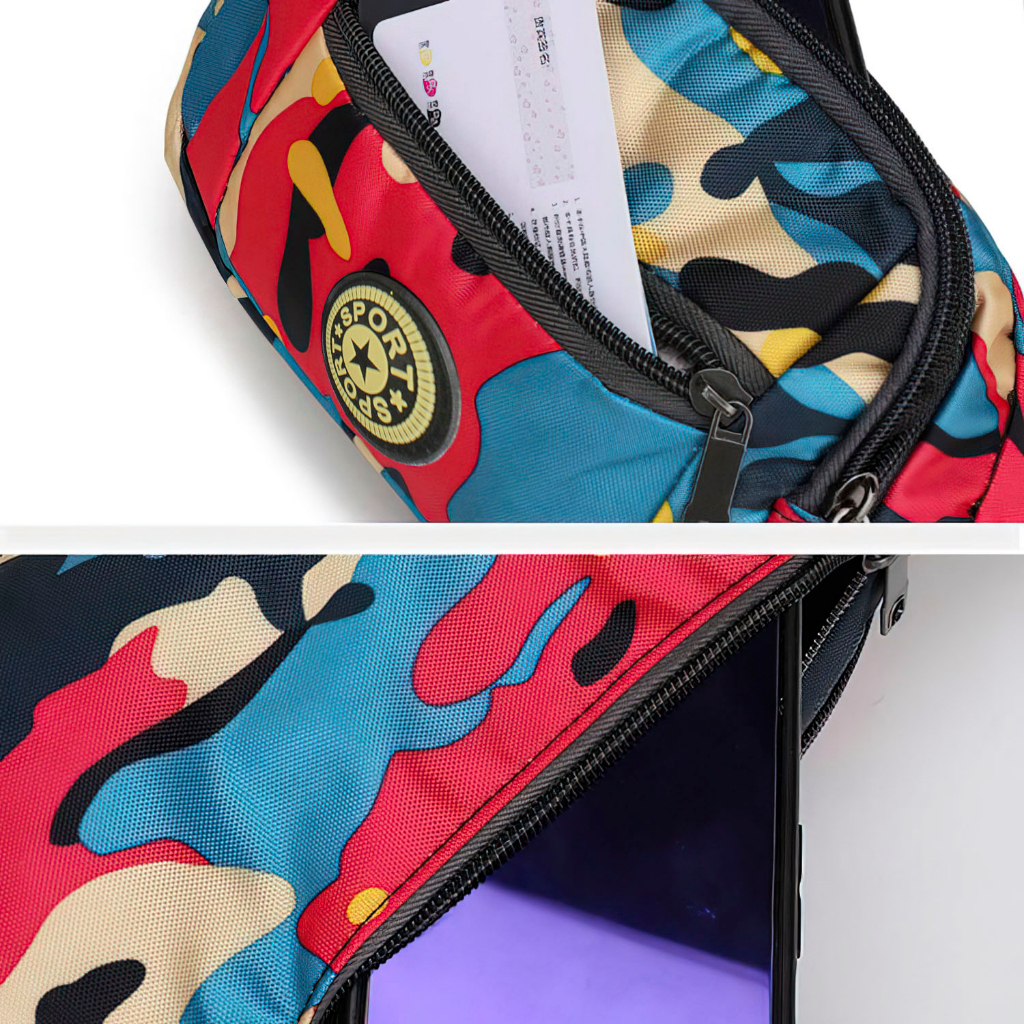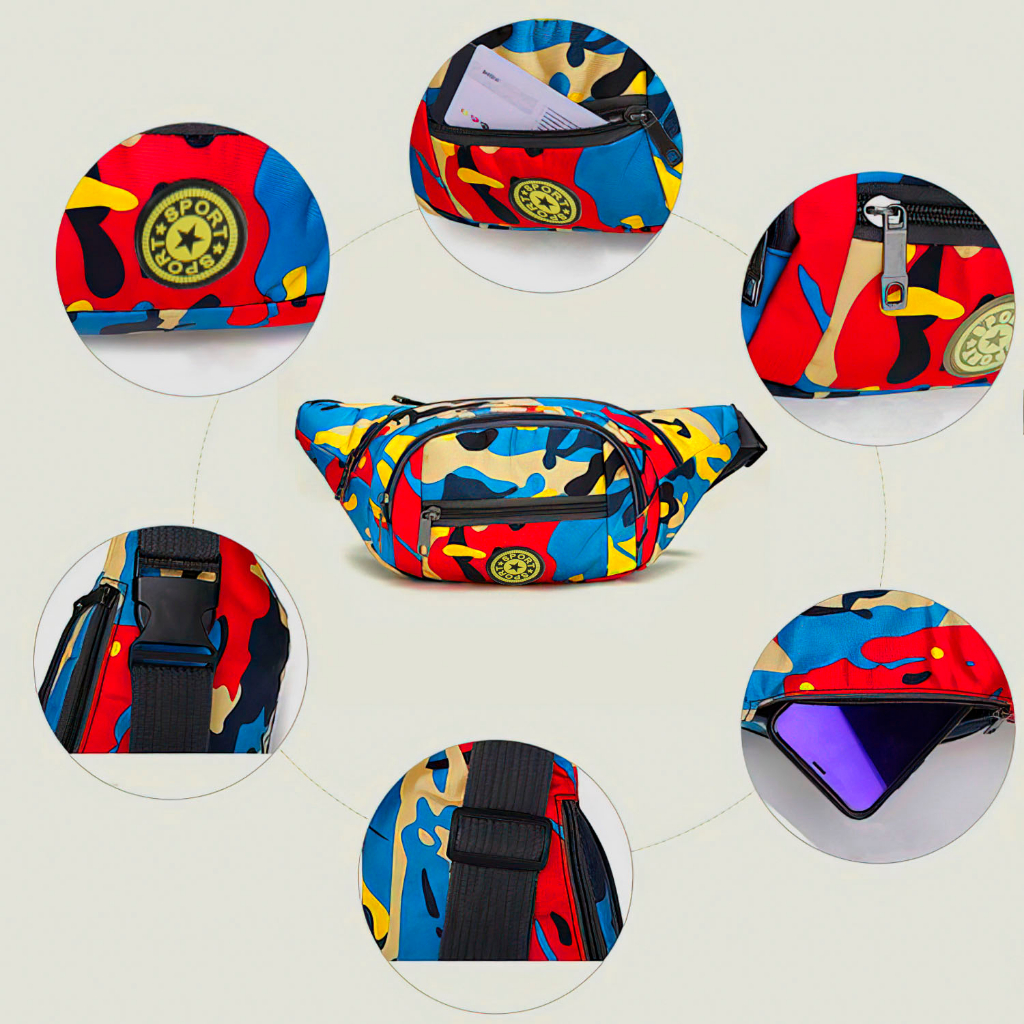 Tas Selempang Warna Loreng Tas Pinggang Kanvas Pria Wanita Waistbag Style Best Quality - K-6