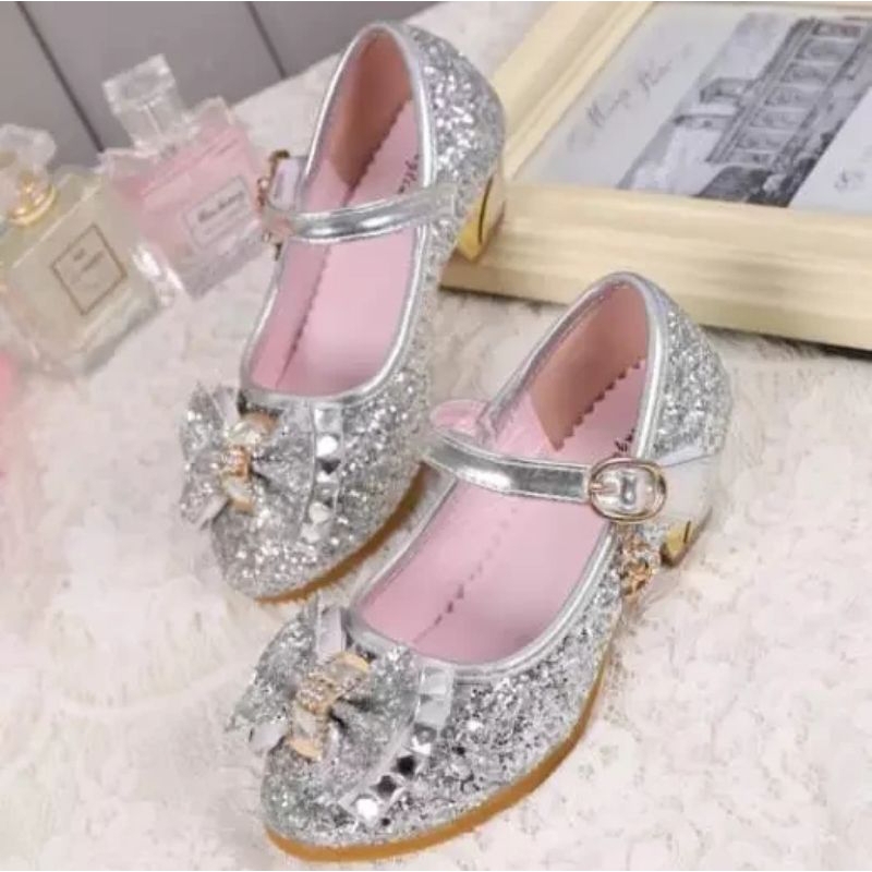 Sepatu Anak Formal Princess Frozen / Sepatu Gliters Princes Kekinian Sepatu Ulang Tahun Pink Biru Silver Gold Sepatu Pesta Heels Princess Glitter Anak Perempuan Sepatu High Heels Anak Sepatu Natal