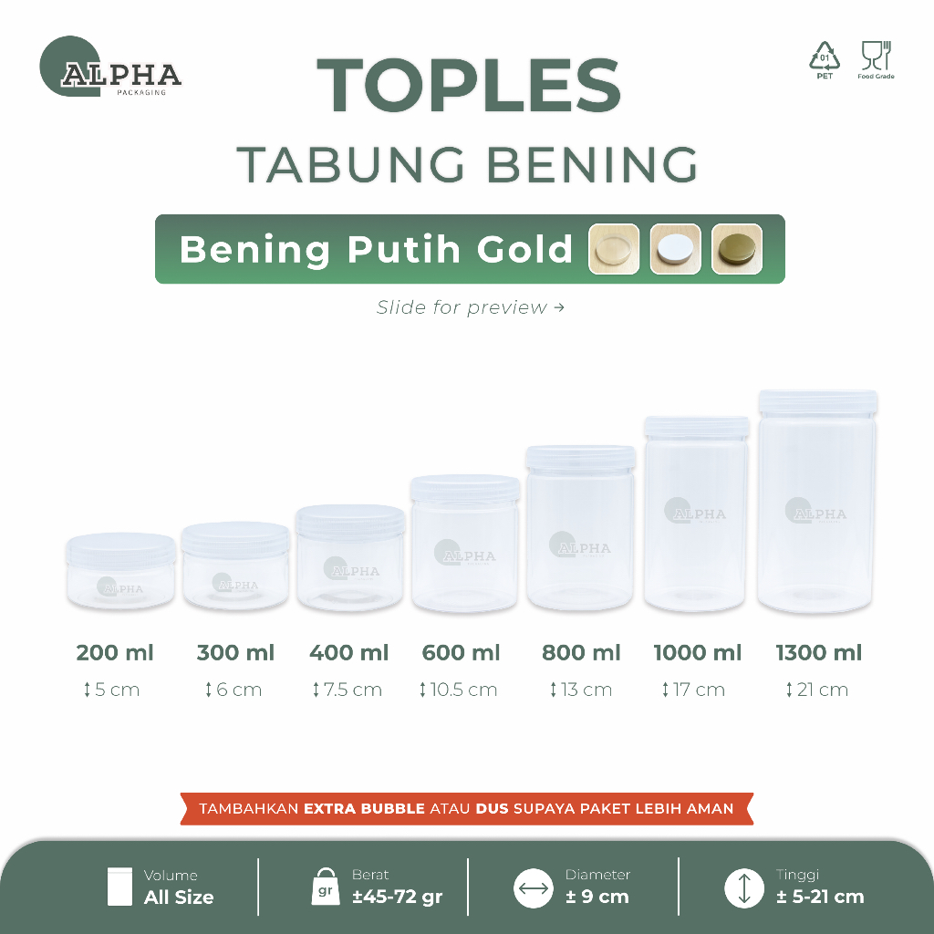 Toples Plastik Tabung Bening - 200ml 300ml 400ml 600ml 800ml 1000ml 1300ml - Jar Silinder Kue Kering