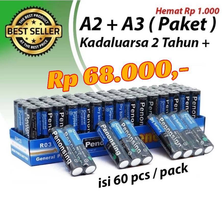 (120 pcs) LEBIH HEMAT PENONSING Baterai AA / Besar / A2 (60pcs) + AAA / Kecil / A3 (60pcs) - Batre Premium Quality