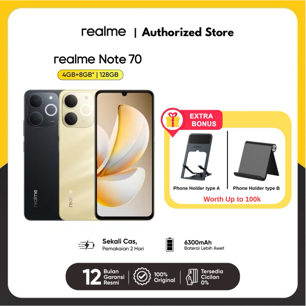 Realme Note 70 4Gb+8Gb|128Gb | 64Gb | Ip54 | Military Grade Shock Resistance | 7.94Mm Ultra Tipis | Pulse Light | Ai Ca