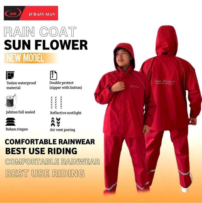 JAS HUJAN SUNFLOWER PREMIUM NEW MODEL SIZE M, L, XL - HITAM, L