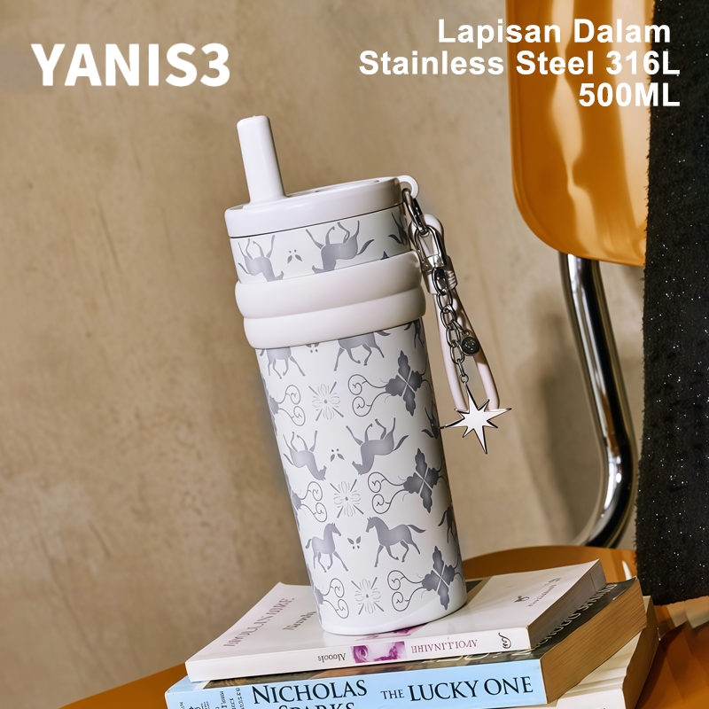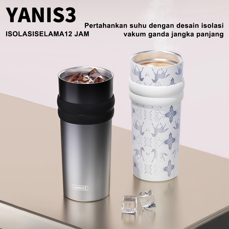 YANIS3 Tumbler Stainless Steel 550ml Termos Tahan Panas Dingin Aesthetic Botol Minum Kopi