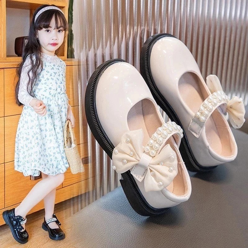 sepatu pesta anak perempuan mutiara glossy / sepatu docmart anak perempuan mewah model terbaru