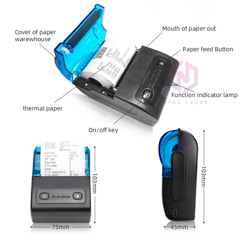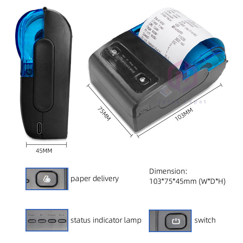 Printer Bluetooth Mini Printer Thermal Mobile Portable 58Mm Bluetooth Support Windows, Android And Ios