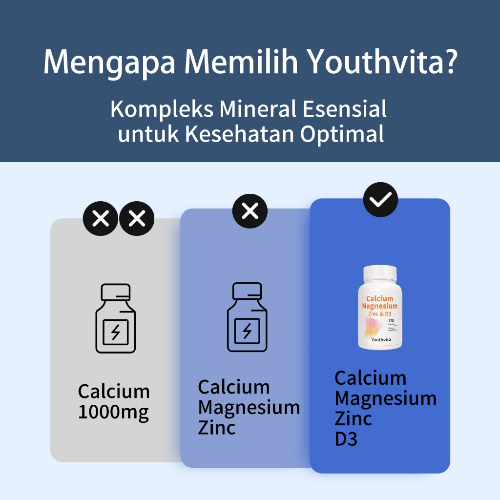 Youthvita Peninggi Badan Anak Calcium Magnesium Zinc Vitamind3 Capsules, Penambah Tinggi Badan, 120 Count