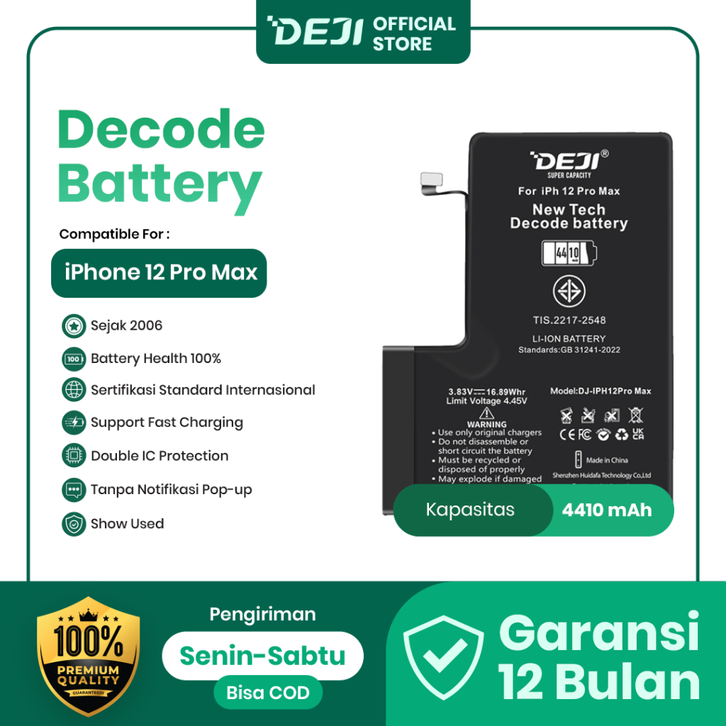 DEJI Baterai iPhone 12 Pro Max Li-ion 4410mAh 4.35V Dee Capacity