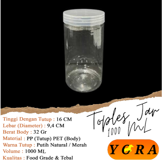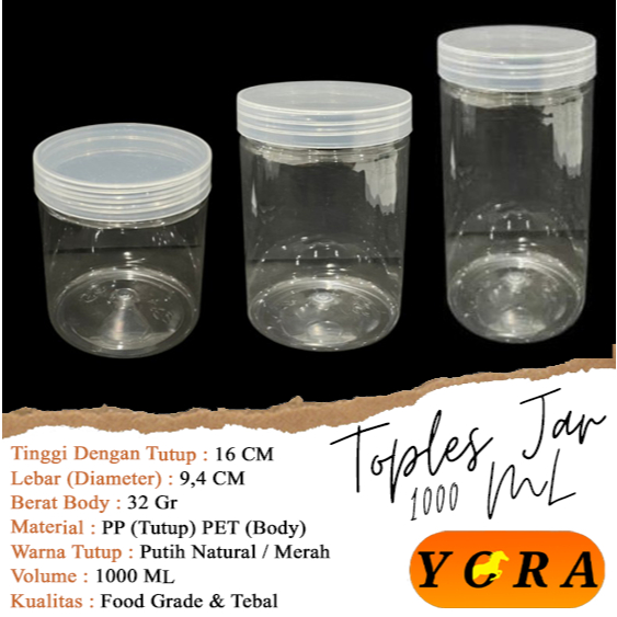 Toples Jar 1000ml plastik / 1000gr / toples jar cylinder 1000ml / toples tabung 1000ml / mika kue/ toples kue / toples