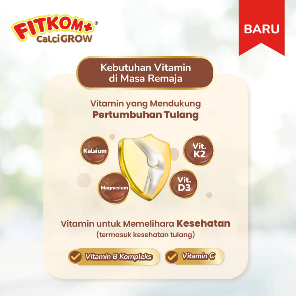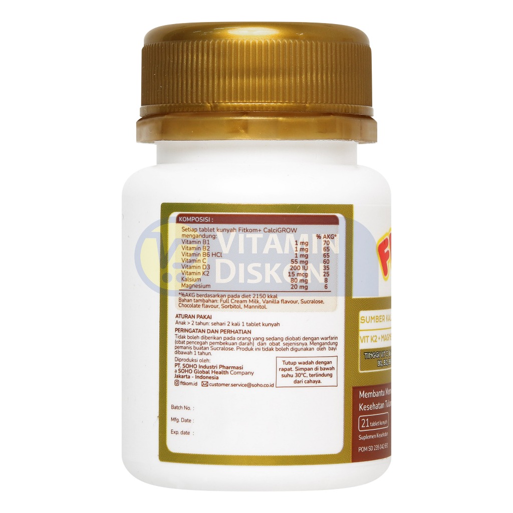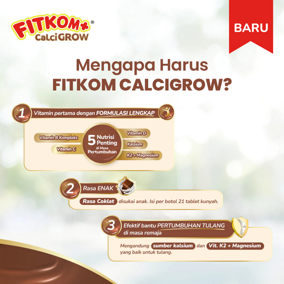 Fitkom Calci Grow - Isi 21 Tablet Kunyah | Vitamin Tinggi Badan Anak Rasa Coklat