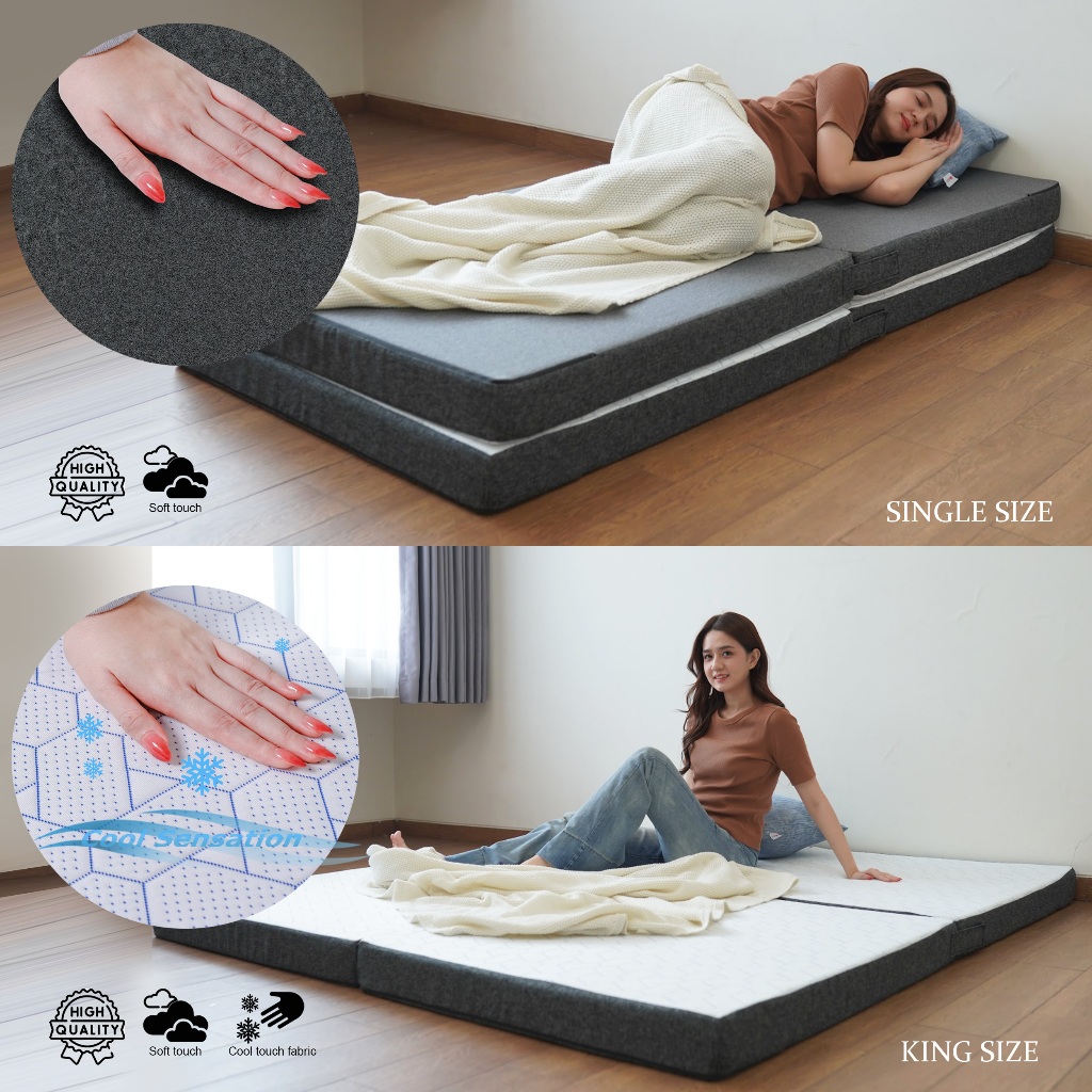 Hiyori 3 Way Mattress - Kasur Lipat Praktis Busa High Density Cool Sensation/Matras Lipat Multifungsi Cover Lembut Dan D
