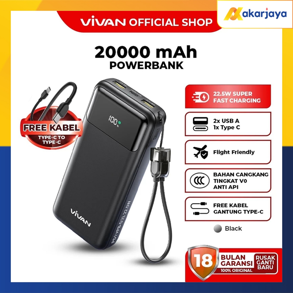 VIVAN VPB-D21 CCC Certified 20000mAh Powerbank Quick Charging PD 22.5W Power Bank Sertifikasi CCC