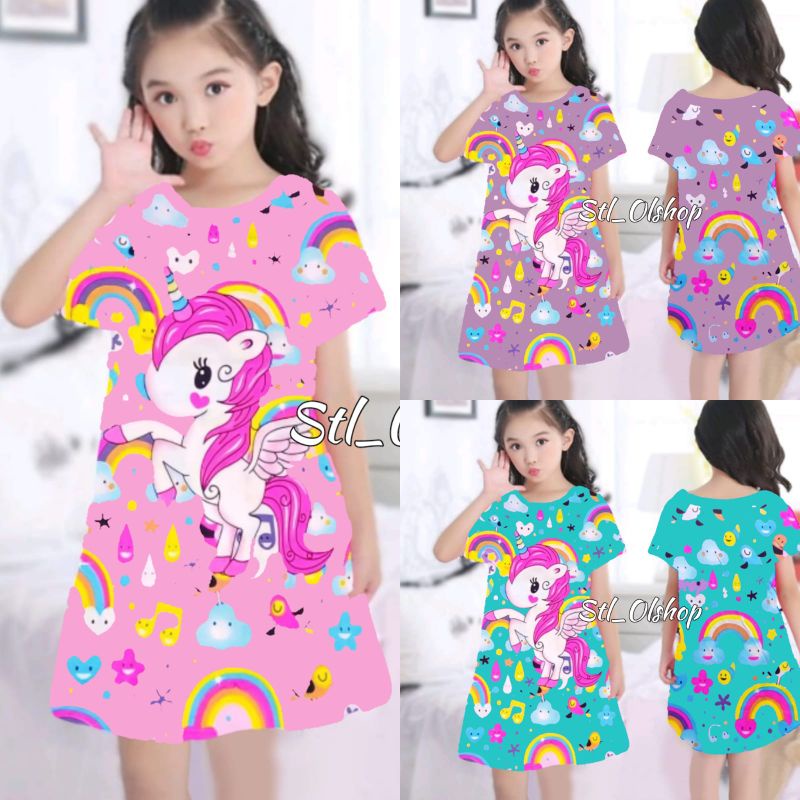 Dress/daster fullprint unicorn anak perempuan murah Fullprint motif unicorn 1-10 Tahun