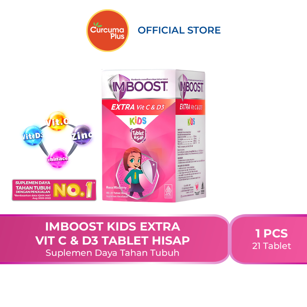 Imboost Kids Extra Vit C & D3 Tablet Hisap Suplemen Daya Tahan Tubuh Anak [1 Botol - 21 Tablet]