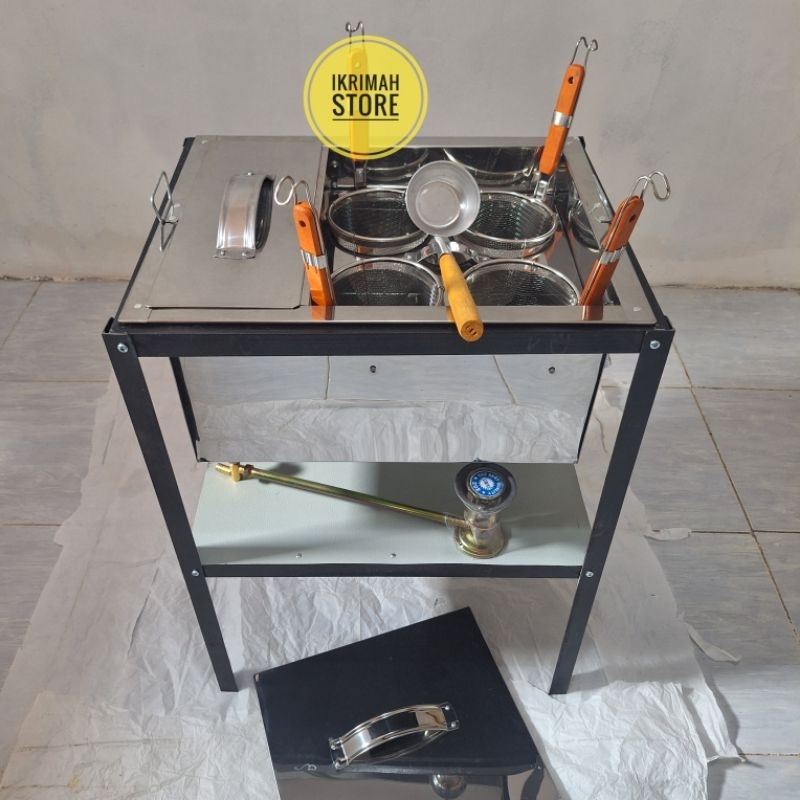 dandang mie ayam 4 lubang set - panci mie ayam bakso 4 lubang kotak - tong mie kocok stainless
