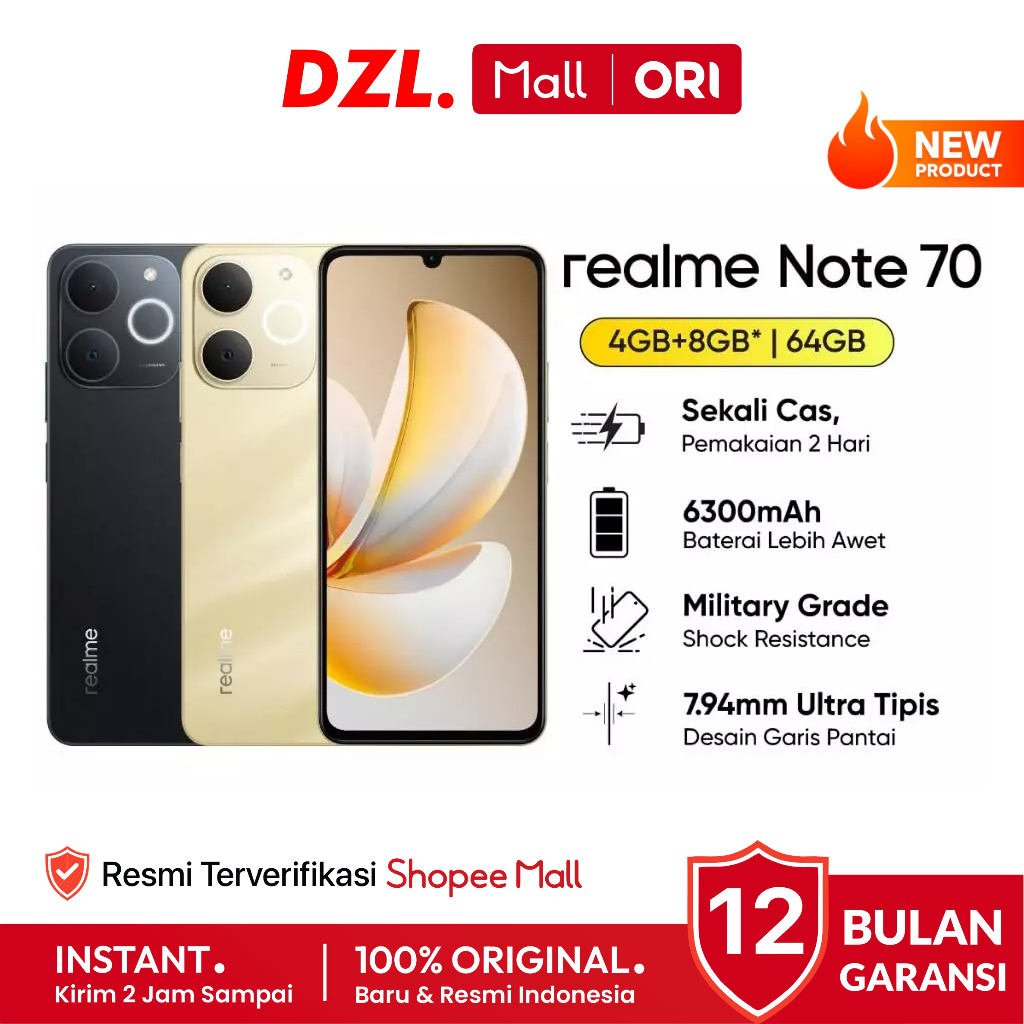 Dzl - Hp Realme Note 70 4/128 4/64 Gb Original Garansi Resmi Official Store Handphone Ori