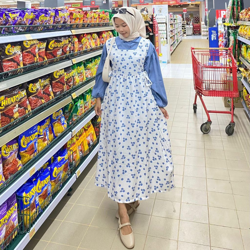 Himari Midi Dress | Dress Midi Korea | Overall Korean Style | Sloopy Motif Bunga