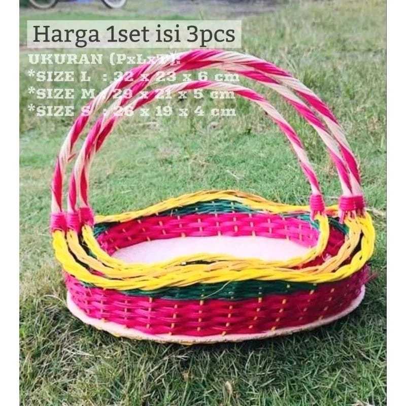 DAPET 3PCS PROMO HARGA Keranjang Parcel Rotan Anyaman Ombak Natural Warna Hampers Sovenir Lebaran Murah Baki Seserah