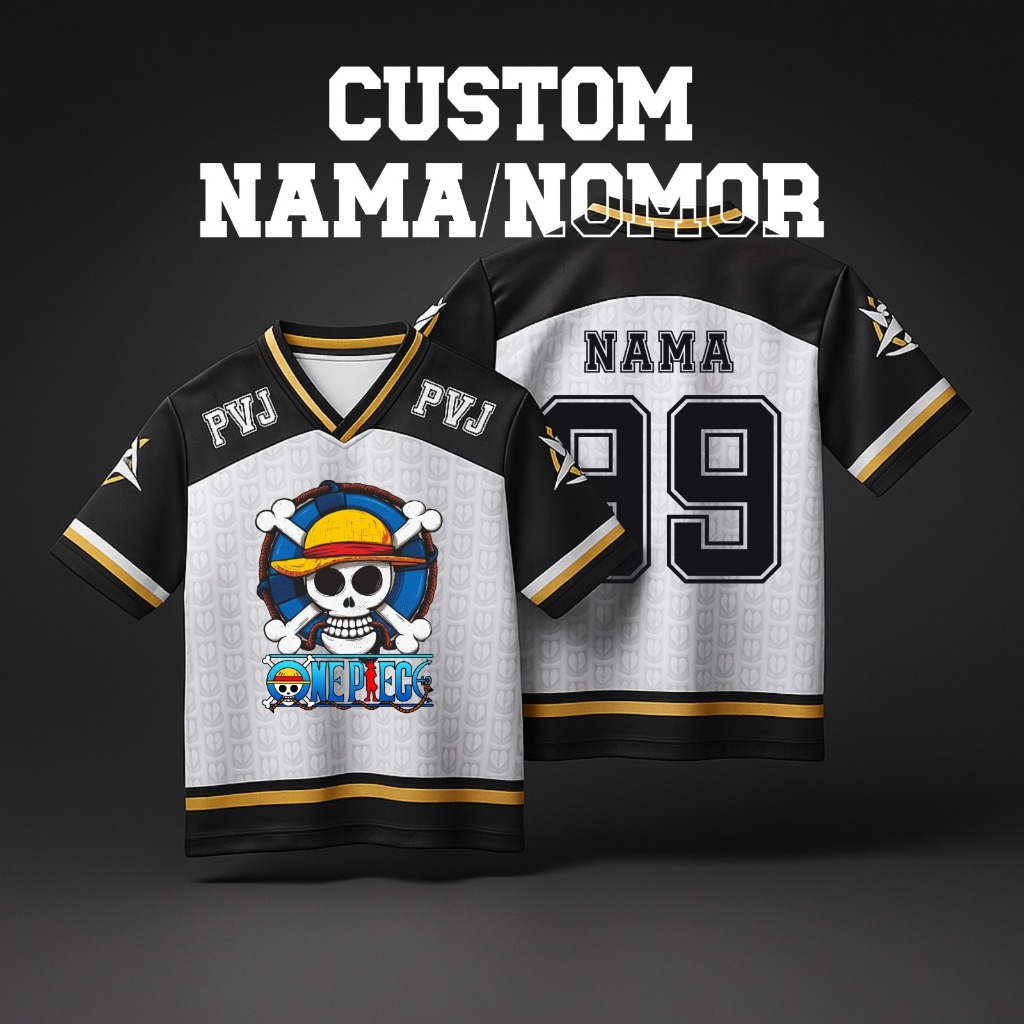 PVJ | Kaos Jersey Olahraga Futsal Baju Baseball Anak Gambar One Piece Custom Print Nama