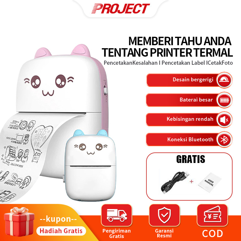Pjt Printer Termal Portabel 57Mm Mini Bluetooth - Tanpa Tinta Kompatibel Android/Ios Cetak Label/Resep/Kode Batang/Foto