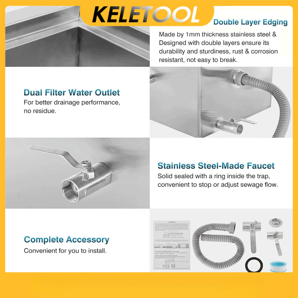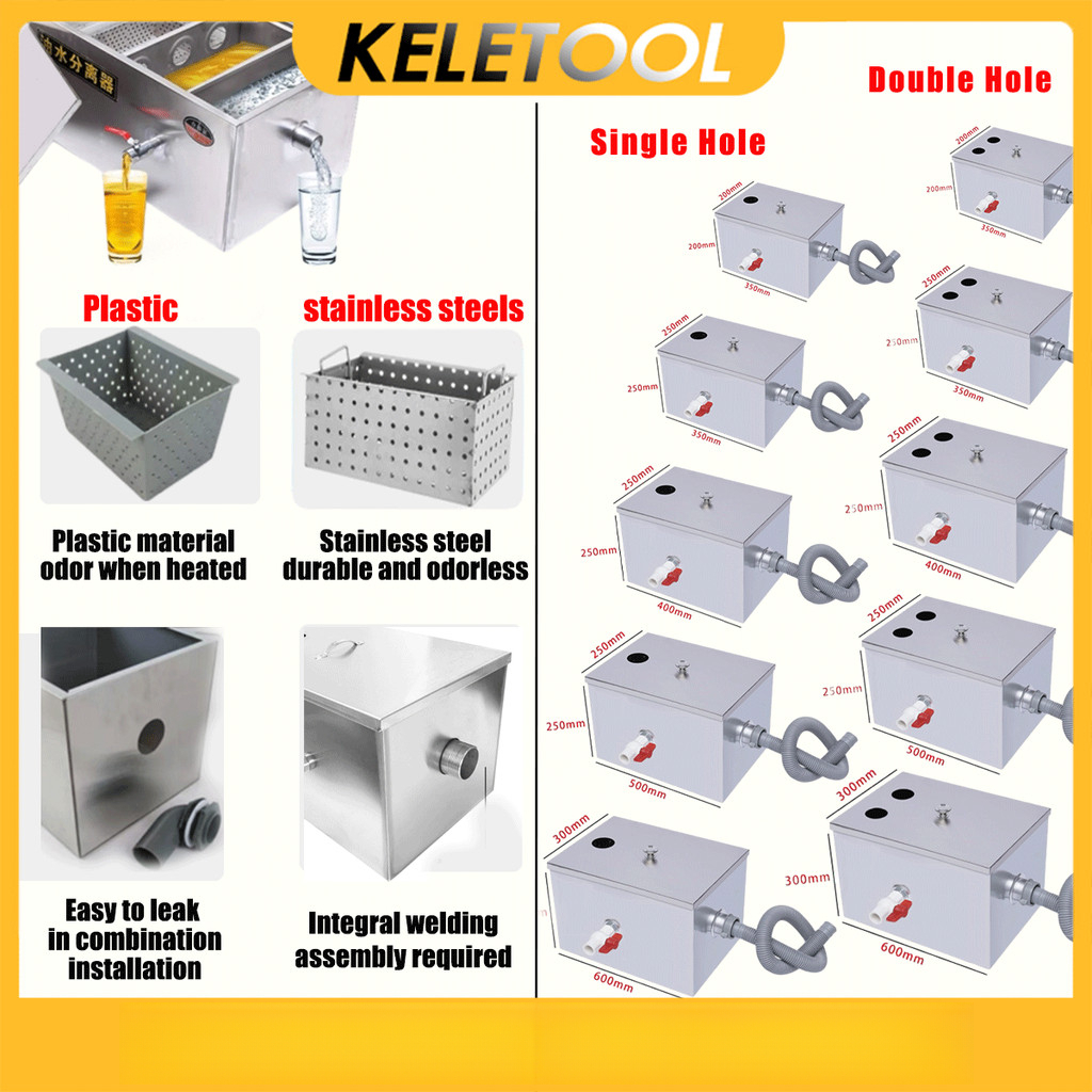 Grease Trap 4 Lsan Stainless Steel Ukuran besar Penyaring Lemak Dapur saringan lemak 60*30*30cm bagus