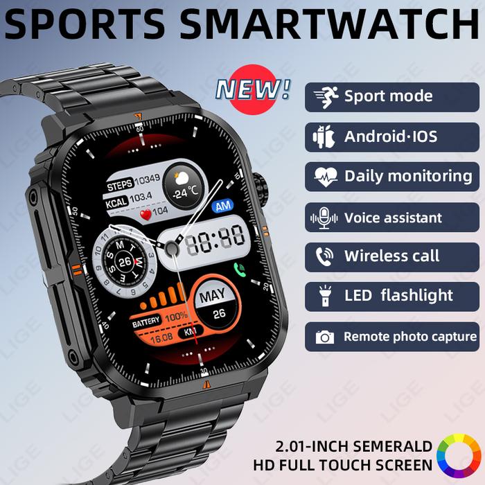 LIGE NEW SMART WATCH MEN LAYAR HD BESAR 2 01 INCI PANGGILAN BLUETOOTH SENTER TAHAN AIR JAM TANGAN PINTAR OLAHRAGA UNTUK ANDROID DAN IOS - SILIKON HITAM