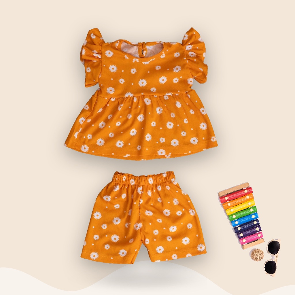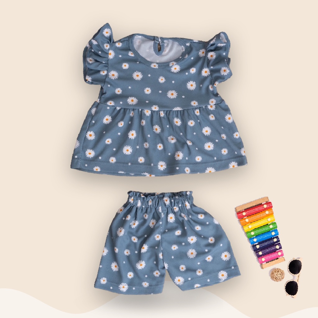 SET SONIA DAISY / SETELAN BAJU ANAK PEREMPUAN RUFFLE MOTIF BUNGA