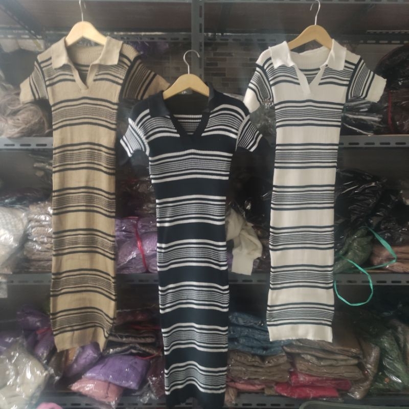 Dress Rajut Wanita Iisaii - Mini Dress Perempuan Terbaru Motif Salur