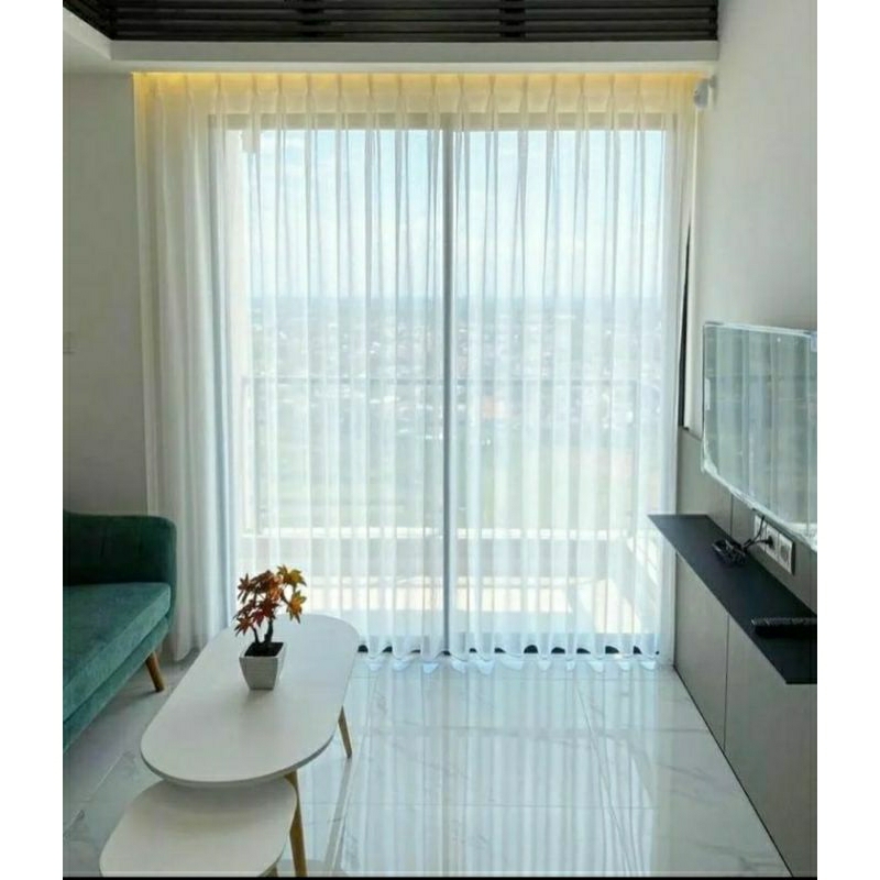 Gorden Vitrase Polos Hordeng Jendela Horden Pintu Transparan Putih Model Plisket Kait S Lipat 1