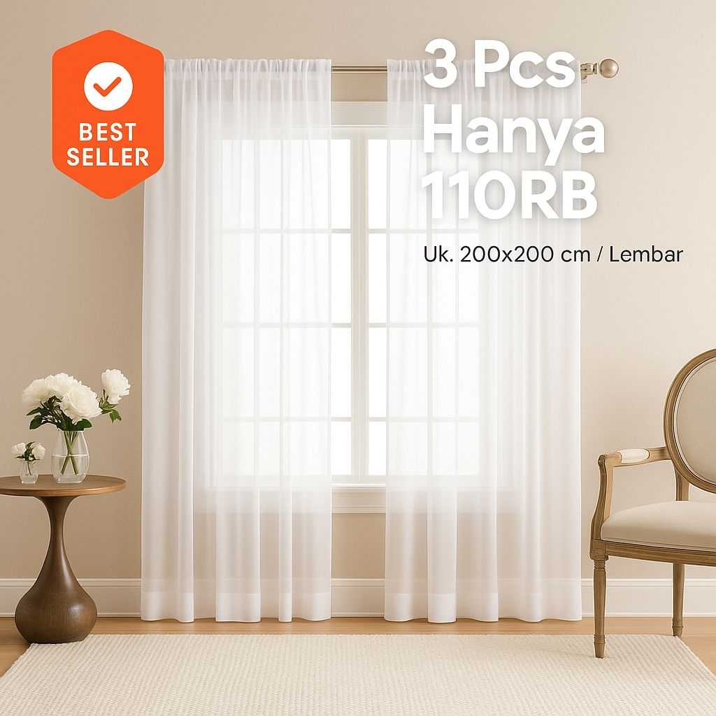 Vitrase Gorden Jendela Putih Plisket Serut 200x200 cm Isi 3 Pcs – Gorden Tipis Minimalis