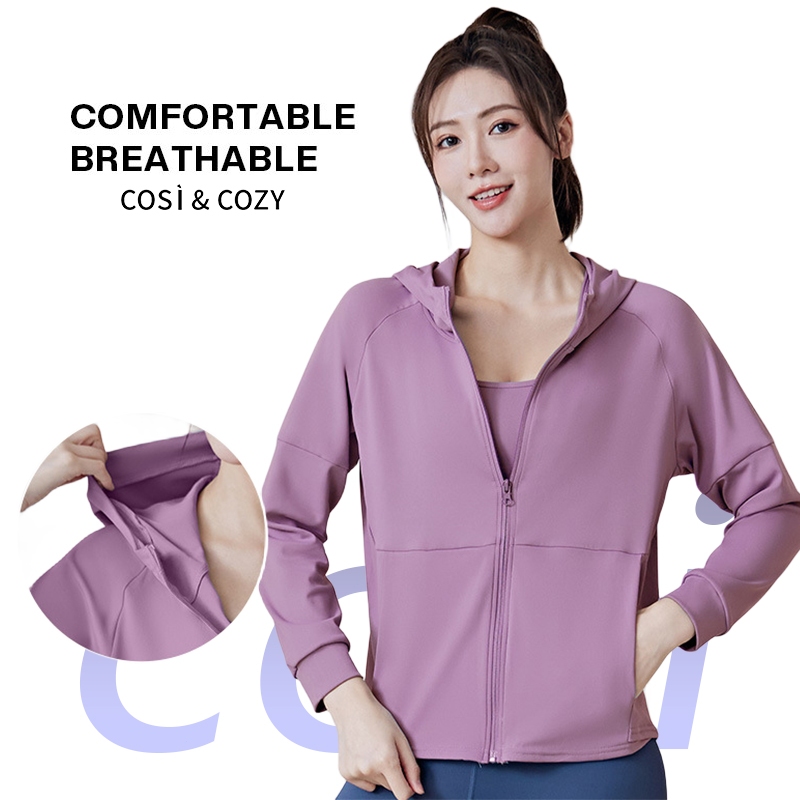COSI COZY Jaket Olahraga Wnita Pakaian Olahraga Longgar Jaket Oversize Yoga Jaket Airy Jaket Anti UV UPF50+