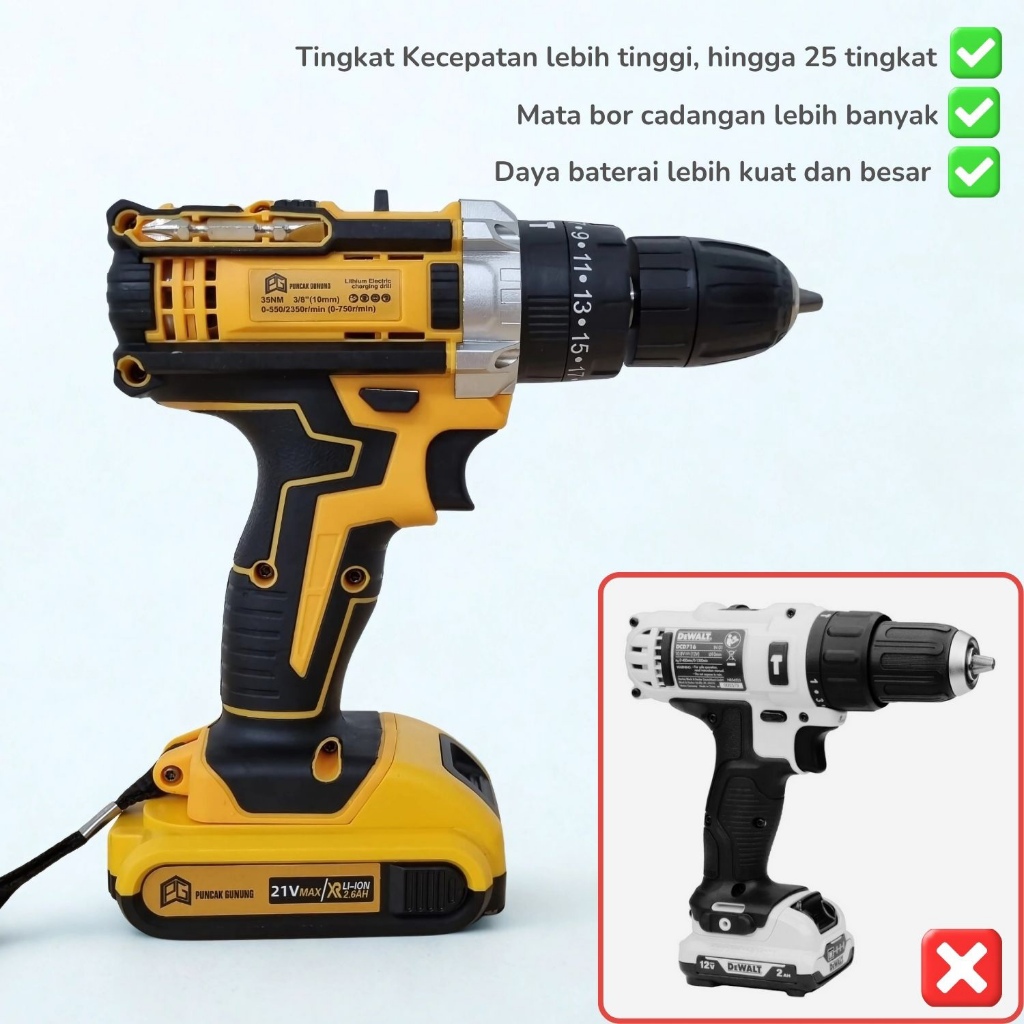 Mesin Bor 2 Baterai Tanpa Kabel Cordless Drill Fullset Elektrik Impact Tangan Tool Cas Listrik G11B1
