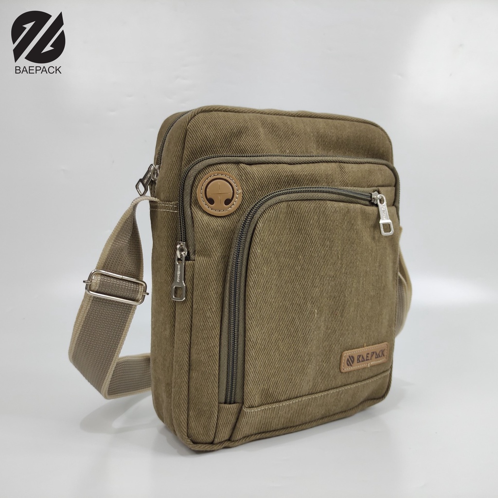 Tas Selempang Kanvas Cowok Dengan Lubang Headset Argo Cream Original Baepack / Tas Kanvas Bahu Pria / Tas Canvas Terbaik