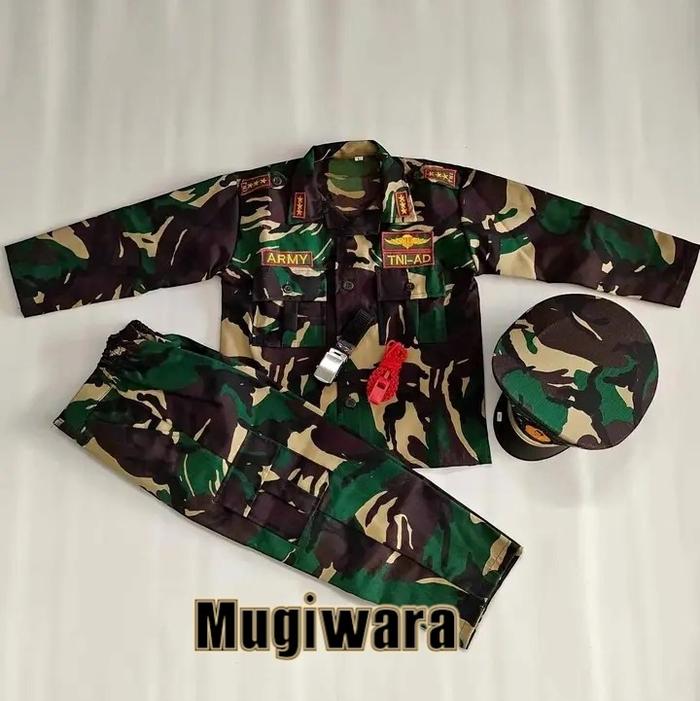 MUGIWARA - ONE SET BAJU SERAGAM TNI AD PROFESI ANAK TK LAKI - LAKI DAN PEREMPUAN GROSIR - TNI AD COWO 1 SET, S 3-4 TAHUN