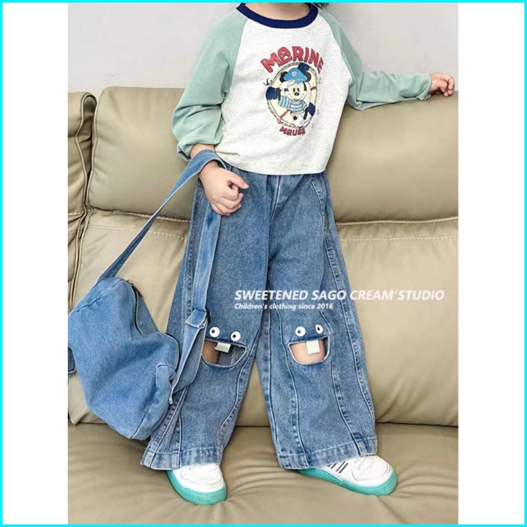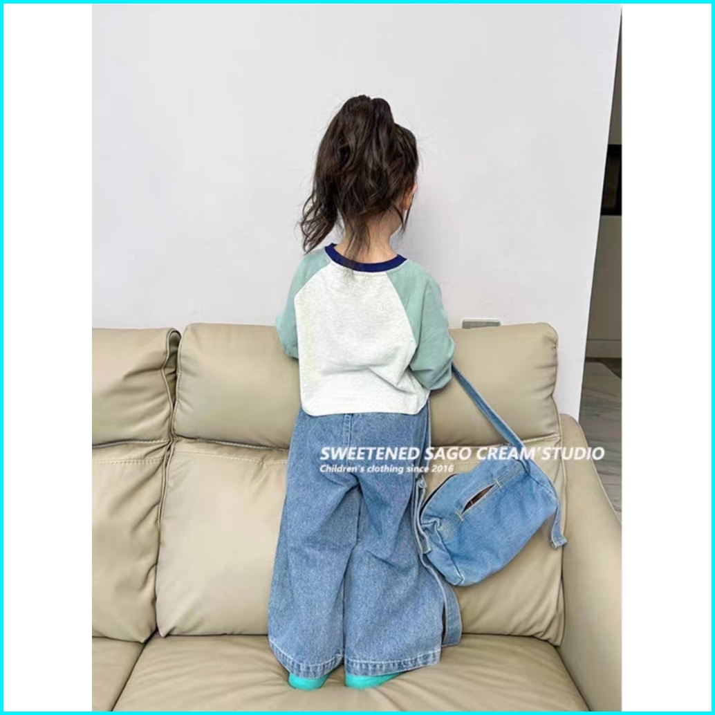 Ootd Anak Perempuan Set Anak Perempuan Style Terbaru Setelan Anak Perempuan T-shirt Lengan Panjang Bahan Katun Celana Je
