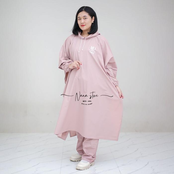 JAS HUJAN PONCHO/KELELAWAR CELANA PRIA WANITA DEWASA BAHAN PREMIUM PVC KUAT TEBAL DAN ELASTIS ANTI REMBES BY HIL'D RAINCOAT PONCO - DUSTY PINK PREMIUM PONCO CELANA, ALL SIZE