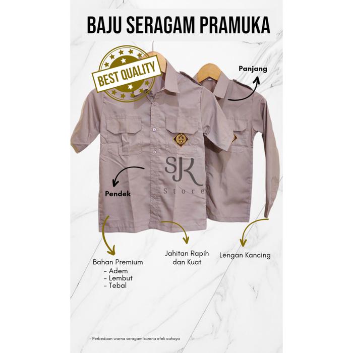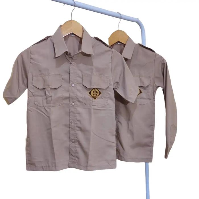 BAJU PRAMUKA PRIA SERAGAM SEKOLAH SD/SMP/SMA KAIN OXFORD PANJANG PENDEK LOGO BORDIR NYAMAN - LENGAN PENDEK, SIZE 2