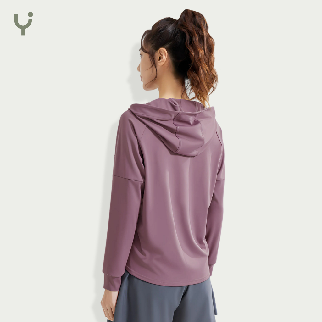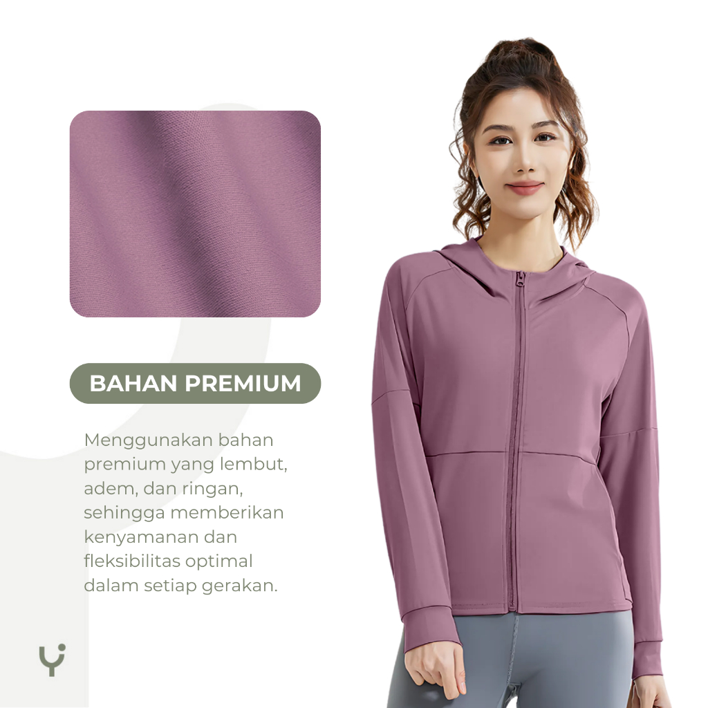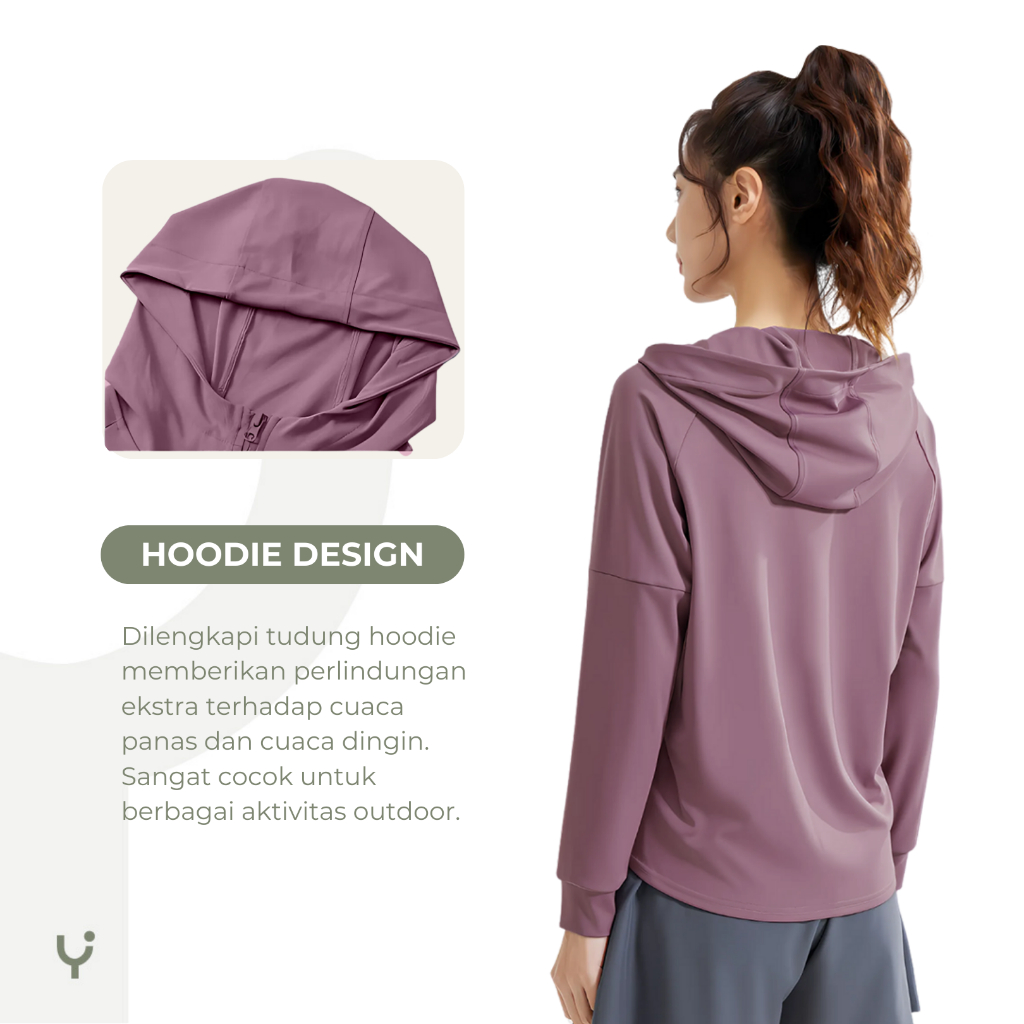 YOURA - Jaket Olahraga Wanita Longgar Dengan Hoodie Jaket Oversize Yoga Jaket Airy Jaket Anti UV UPF50+